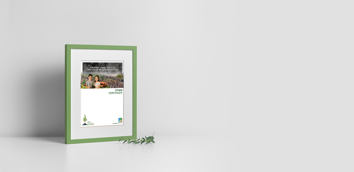 בשל הצורך והחשיבות במניעת כריתת עצים ביערות ופגיעה באיכות הסביבה, התעודה הינה תעודה דיגיטלית הנשלחת בדוא”ל בלבד.